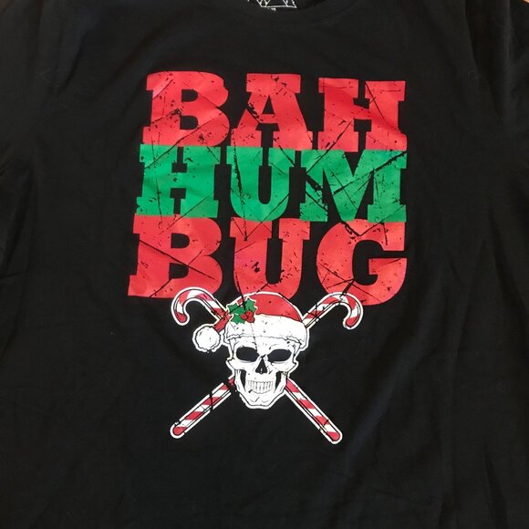 Bah Humbug Skull & Candy Cane Graphic T-Shirt L/G 100% Cotton Black
