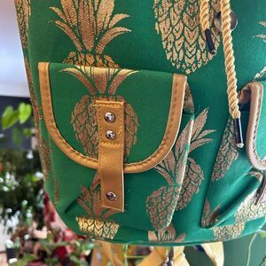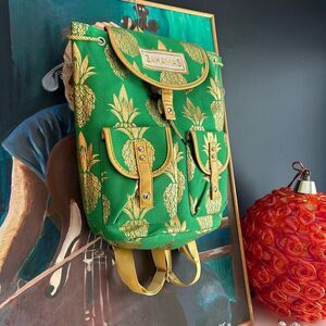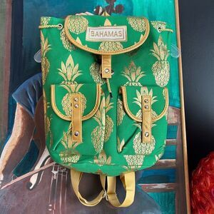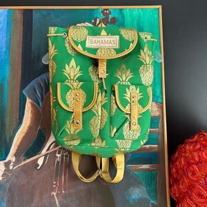 Bahamas Rare Metallic Pineapple Print on Hemp Backpack With Front Pockets New