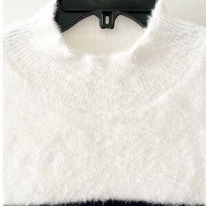 Bailey 44 Mock Neck Striped Fuzzy Kitten Yarn Pullover XS