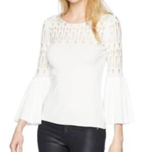 Bailey 44 Street Fair Sweater. Crewneck. Slim fit with bell pleated sleeves. Cutout details