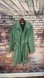 It’s very soft almost plush fabric. It’s like a big warm hug. Beautiful green colour. It’s lined on the inside and has functional side pockets. No buttons or zipper open front. It also looks great just open without the belt worn as a cardigan.