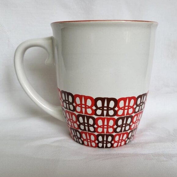 White handled ceramic mug - 4" tall, 3 1/4" wide at top