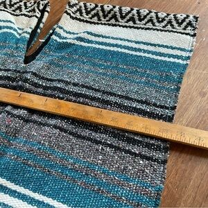 Baja Mexican Blanket Poncho Wrap Blue White Black Striped, One Size