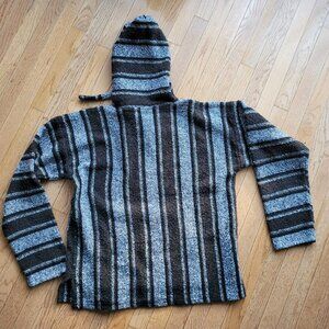 Baja Pullover Hoodie Drug Rug Striped Hooded Sweatshirt Mexican Baja Jacket
