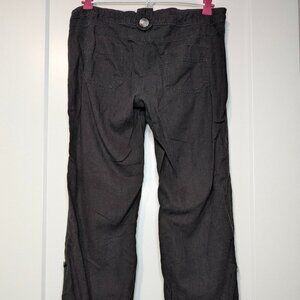 ✨ Description: Casual & versatile black capris. Adjustable button-tab hems (wear cropped or longer), drawstring waist with partial elastic for comfort, front pockets. Tag says Large but fit is closer to a Medium.
