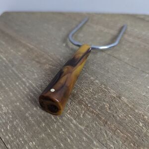 Bakelite handle 2 prong meat fork, mid century modern carving fork