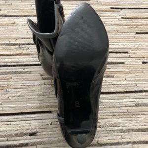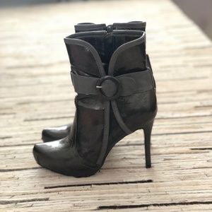 Cute shiny grey high heeled Bakers booties with buckle detail.