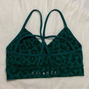 Balance Athletica is now called "Vitality". This is a pretty forest green colour. The leopard details are a velvet material. Strappy back details (not adjustable). Removable padding cups. Size medium. Hardly worn, maybe 2 times. Has a small amount of stretch so I feel like maybe fits a bit small. No flaws, in excellent condition. Stock photos for reference.