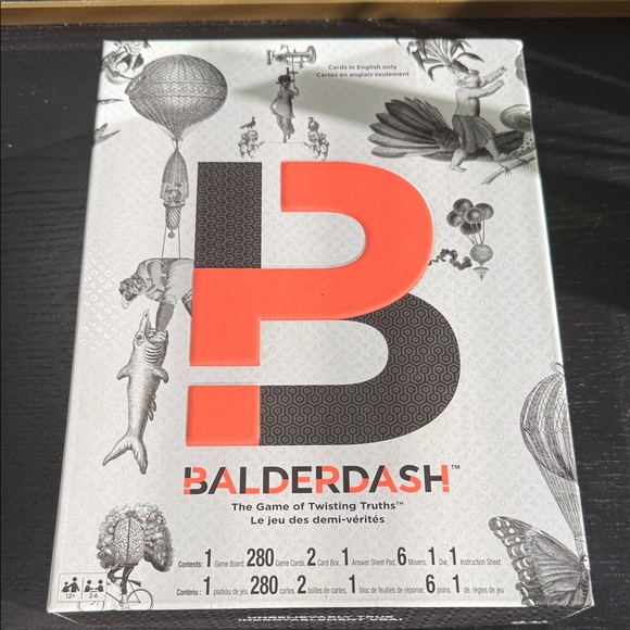 Balderdash board game with a bold red and black design. Perfect for game nights.
