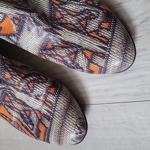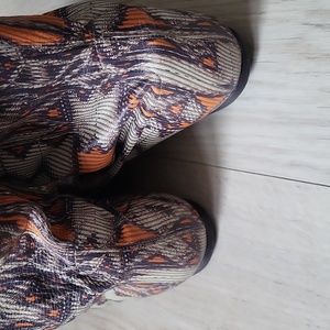size 40 baldinini leather boots. pull up no zipper. very cool bohemian orange and brown pattern. no flaws. they are in great condition.