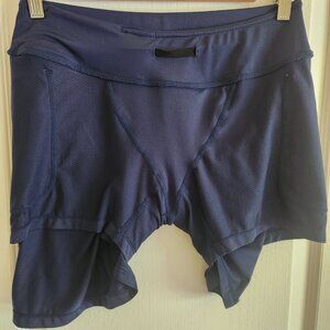 Women’s athletic skirt with inner mesh shorts. Wide waistband with internal drawcord and waistband inner pocket. Mesh shorts with side pockets, and headphone cable hole.
