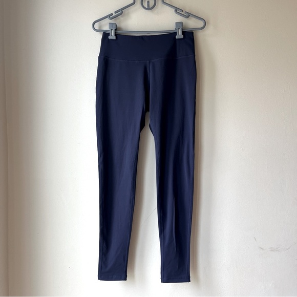 Baleaf women’s leggings in size Medium. Classic navy blue with a smooth high-rise waistband for support and comfort. Made with a performance stretch blend (75% polyester, 25% spandex; lining 91% polyester, 9% spandex) that’s breathable, moisture-wicking, and squat-proof. Perfect for yoga, gym, running, or everyday athleisure wear. Soft inner lining adds extra comfort. Measurements included in photos.
