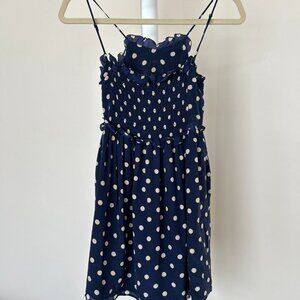 Balenciaga 2017 Silk Navy Polka Dot Mini Dress Size XS