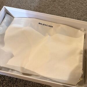 The clean-cut look in these Arena sneakers from Balenciaga is created with the white leather exterior, finished off with lace up front and complementing platform soles. Comes with box, original extra laces, and dust bag. Eu sz 41