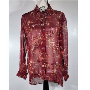 Balenciaga Authentic Red Floral Sheer Silk Blouse, Womens Size IT 36 / US 4