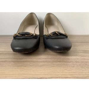 Elegant black leather heels. Features a classic buckle design. Perfect for any occasion.