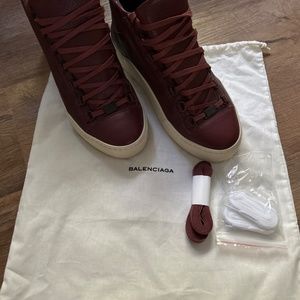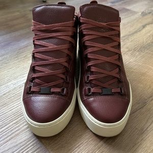Balenciaga Chèvre Hamilton Arena Leather High Top Sneakers Maroon