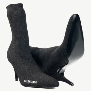 Balenciaga Knife 80 Black Glittered Stretch-Knit Ankle Boots
