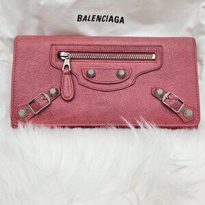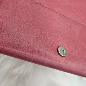 Crafted in vibrant light pink leather with silver-tone metal accents, this wallet features a front zip pocket, flap with press-stud closure,