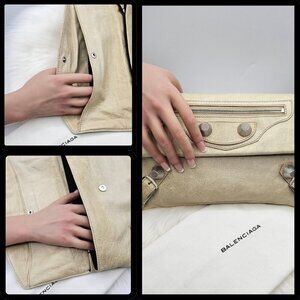Balenciaga Neutral Beige Leather Clutch