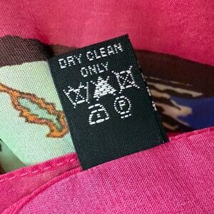 This rare Rosabotanica silk scarf features a vivid botanical design in turquoise, pink, blue, and yellow with a striking hot pink border. The sheer silk fabric gives it a light, airy drape, making it perfect for styling around the neck, as a headscarf, or tied to a bag. Rosabotanica is closely associated with Balenciaga’s iconic fragrance line, making this scarf both a fashion accessory and a collectible piece.