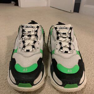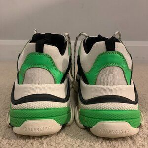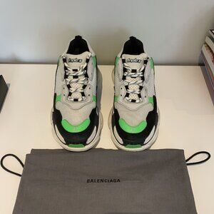 Gently Used Balenciaga Triple S Black White Green with Balenciaga Sneak Bag with Stock X authentication email.