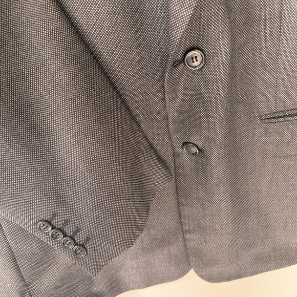 - Single breasted (2-button); Jetted pockets; Peak lapel