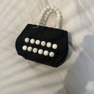 Bali Beaded Straw Black and White Woven Handbag Satchel