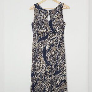 Bali Women's Black & Brown Leopard Print Sleeveless Round Neck Midi Dress Size 6