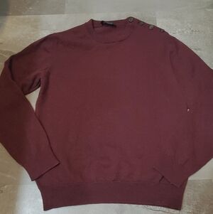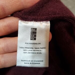 Balibaris "Sailor Marine Sweater". Burgundy. Long sleeves. Button detail on the left shoulder. 100% merino wool. No size tag but fits like a size S, see pictures for measurements. Fabric is soft and stretchy. Excellent condition. No stain, no rip. Non smoking house.