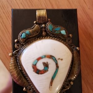 Unique, Beautiful, bold pendant, Ivory base handcrafted in Bali 3 inches length, 2 inches wide