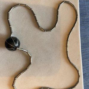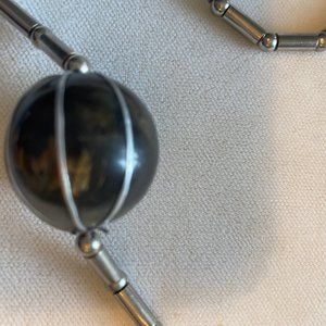 Ball and Chain - Black ball pendant on silver chain. 28" chain