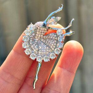 Ballerina Brooch White Gold Plated Zircon Ballerina Pin Ballet Brooch
