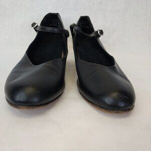 Ballet Maker Ballroom Dance Shoe Womens 8.5 Ankle Strap Leather Sole Matte Black