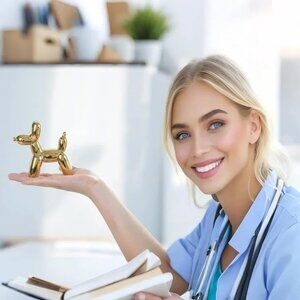 Balloon Dog Statue Small Cute Ceramic Decor for Home or Office Golden Balloon