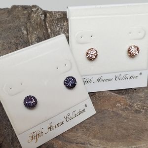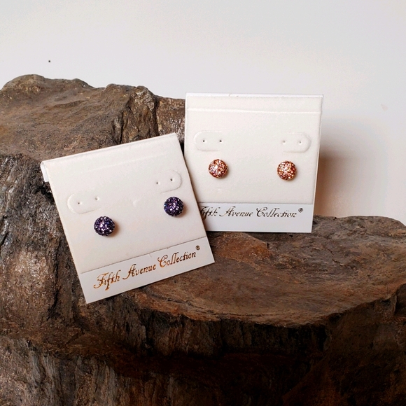 Solid Swarovski crystal studded earrings One in Peach and one in Purple.