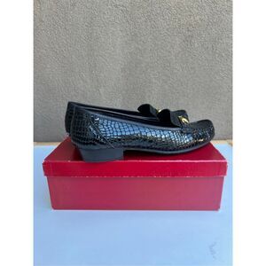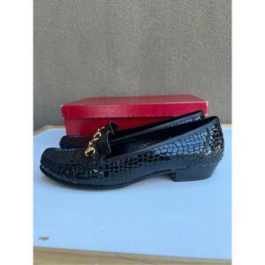 Bally Loafers Women 9 AA Shoes Black Gold Leather Slip On Horse Bit Flats Shiny