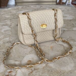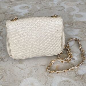 Bally Quilted Ivory Leather Woven Chain Strap Shoulder Bag Vintage