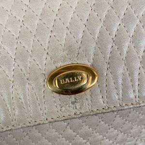 Authentic vintage Bally shoulder bag. Elegant Ivory tone quilted leather. Gold tone woven chain and leather shoulder strap and gold tone branded button closure. Interior is clean with one zippered pocket.