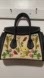 Chic satchel with vibrant floral embroidery. Black leather accents and cream canvas create a stylish contrast.