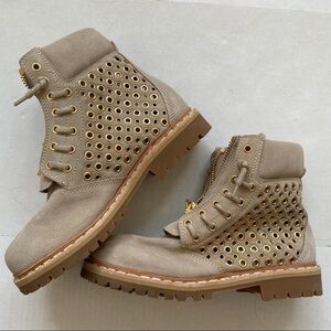 balmain Beige Tia Suede Grommet Ankle Boots 38.5 Mint condition