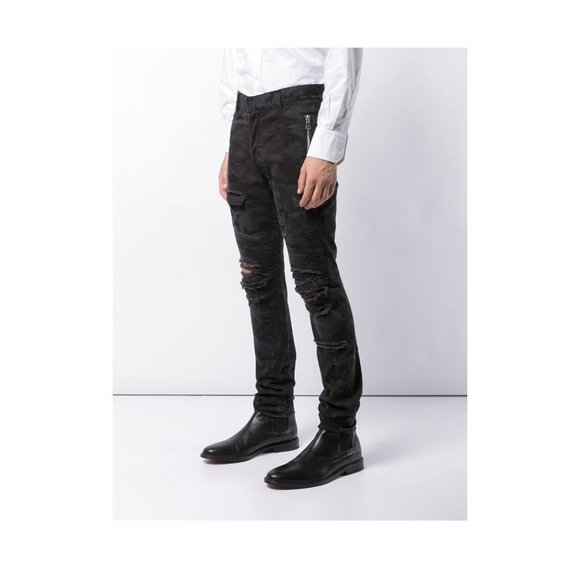 Balmain Black Camo Ripped Slim Fit Jeans