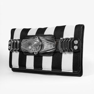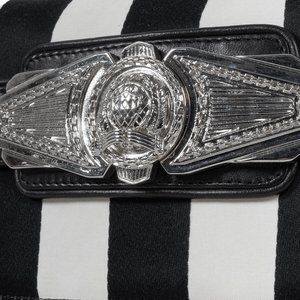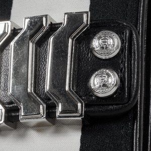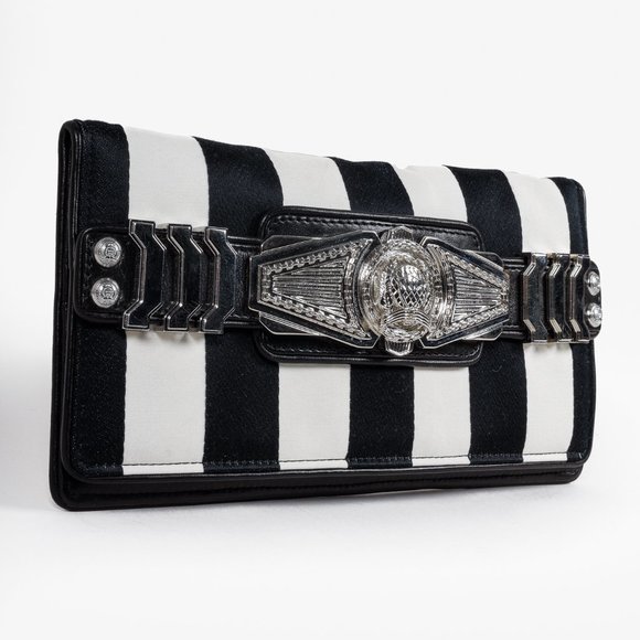 Balmain Black White Stripe Clutch Silver Tone Hardware