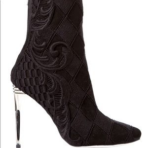 10cm + metal high heel. Back zip closure. Leather innersole and lining. Beautiful signature Balmain embroidery.