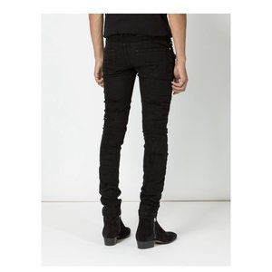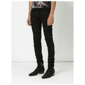 Olivier Rousteing infuses Balmain's signature glamour and lavish embellishments into its accessories, presenting a collection of wearable pieces that will instantly elevate your look. These black biker jeans are crafted from a soft cotton blend and feature a waistband with belt loops, a concealed front fastening, side slit pockets, front zipped pockets, a skinny fit, a regular length and piped panel details.