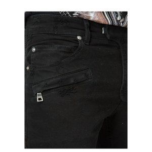 The small white points/stains on the jeans are in fact glitters (see photos attached).