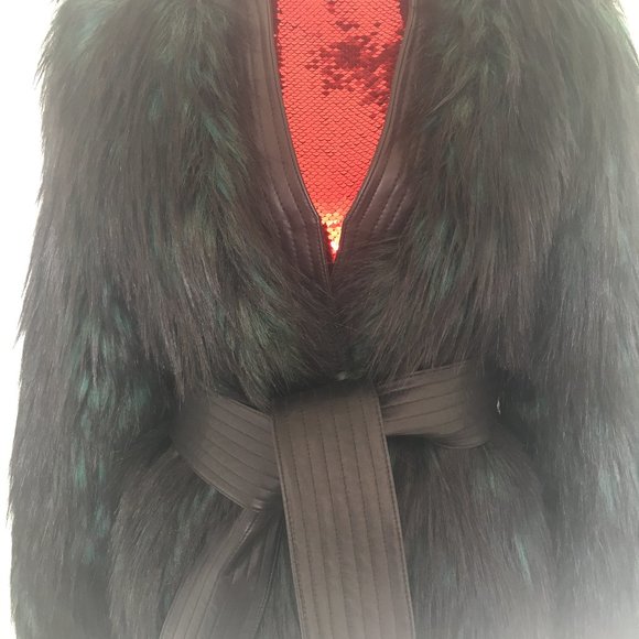 Faux Fur Jacket from Balmain. Black and green, hard to take a picture of the colors, its gorgeous. Never worn, size 38. I would say it fits small. I usually wear 38, but this one is tight on me.