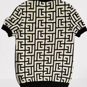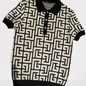 Balmain Men Monogram Wool & Linen Polo Shirt