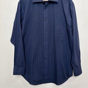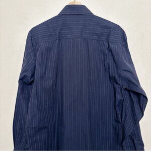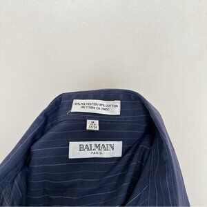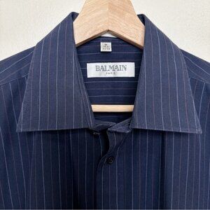 Balmain Paris Mens Medium 15.5 Pinstripe Navy Dress Shirt