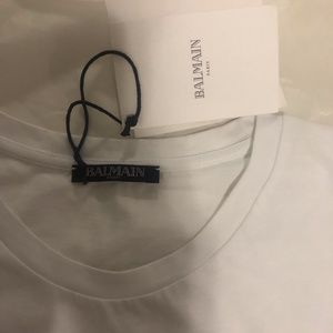 -Short sleeves, crew neck, gold Balmain signature logo print